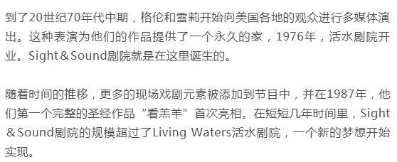 在美国有一座神奇且堪称伟大的剧院,叫做sight&sound(视听音乐剧院)为什么说它神奇呢,因为它是在乡下创立靠几台幻灯片放映机起家的(妥妥的草台班子?!)创立者还是一个在牧场靠养奶牛生活的农民,但如今它不仅是世界上拥有最先进舞台技术的剧院,也成为全美三大剧院之一!