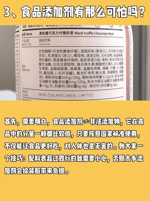 教大家一个技巧:配料表超过四行的就需要小心,否则太多添加剂会给肾脏带来负担。