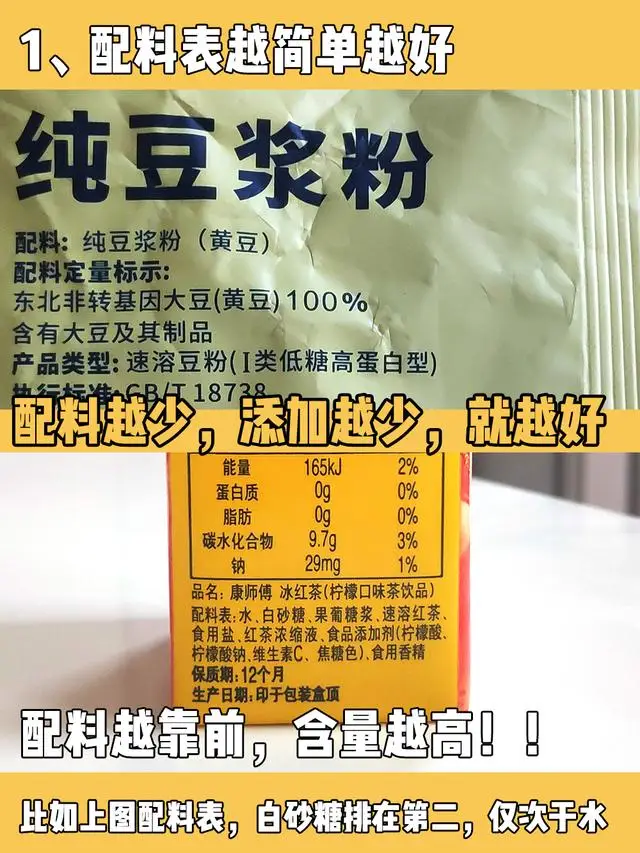 1⃣️ 配料表越简单越好,这代表着添加越少,对健康有利。