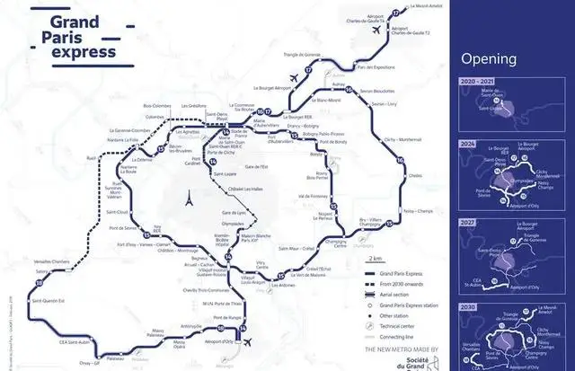 负责地铁建设的巴黎大区快速地铁公司(Société du Grand Paris)公布详细的时间表: