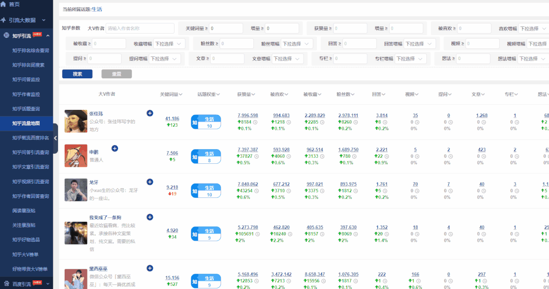 玩法1、通过5118「知乎流量地图」找到话题下的所有作者。
