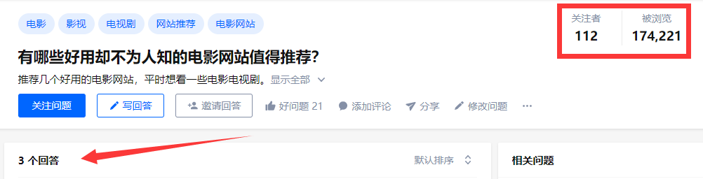优质问题是低成本获取流量的洼地,热度高、关注度高,但同时竞争度也高,前面我们提到如在某领域没有权重积累,当面对回答量多的优质问题时,即使是优质的内容,回答排名也容易沉底,没有曝光度最终费时费力徒劳无功。