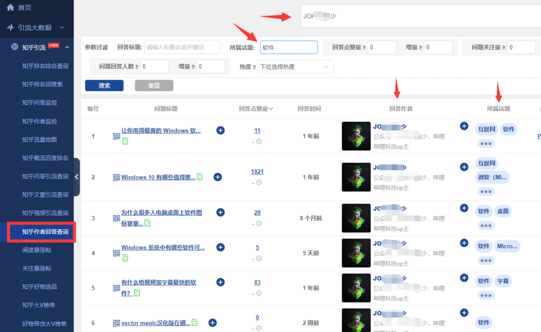 本期新增功能一,可一目了然的查看指定知乎作者所有回答数据。