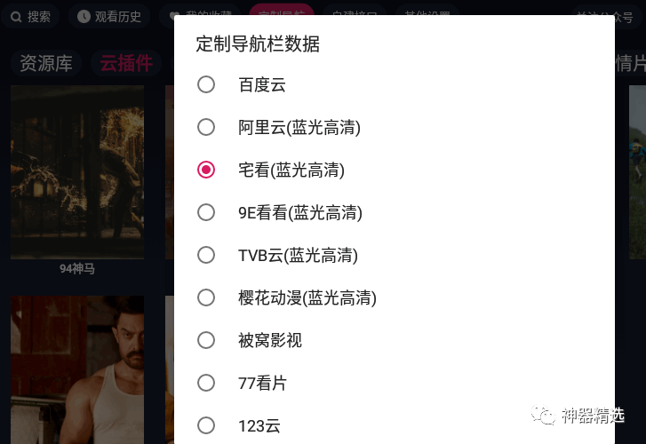 4.内置云插件,提供精品影视源;比如9亿TV专区、8号影院专区、94神马专区等等。