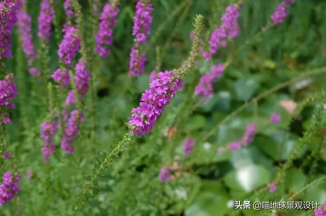 别名:水柳、水枝柳、水枝锦,千屈菜科千屈菜属。多年生挺水宿根草本植物。株高40~120厘米。叶对生或轮生,披针形或宽披针形,叶全缘,无柄。地下根状粗状,木质化。地上茎直立,4棱。长穗状花序顶生,多而小的花朵密生于叶状苞腋中,花玫瑰红色,花期6~10月。
