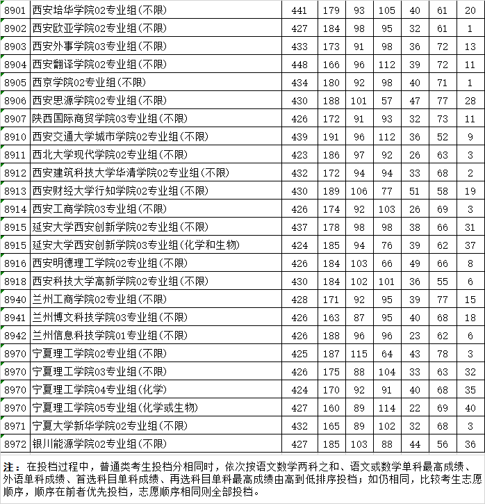 宁夏2021年普通高校招生投档信息
