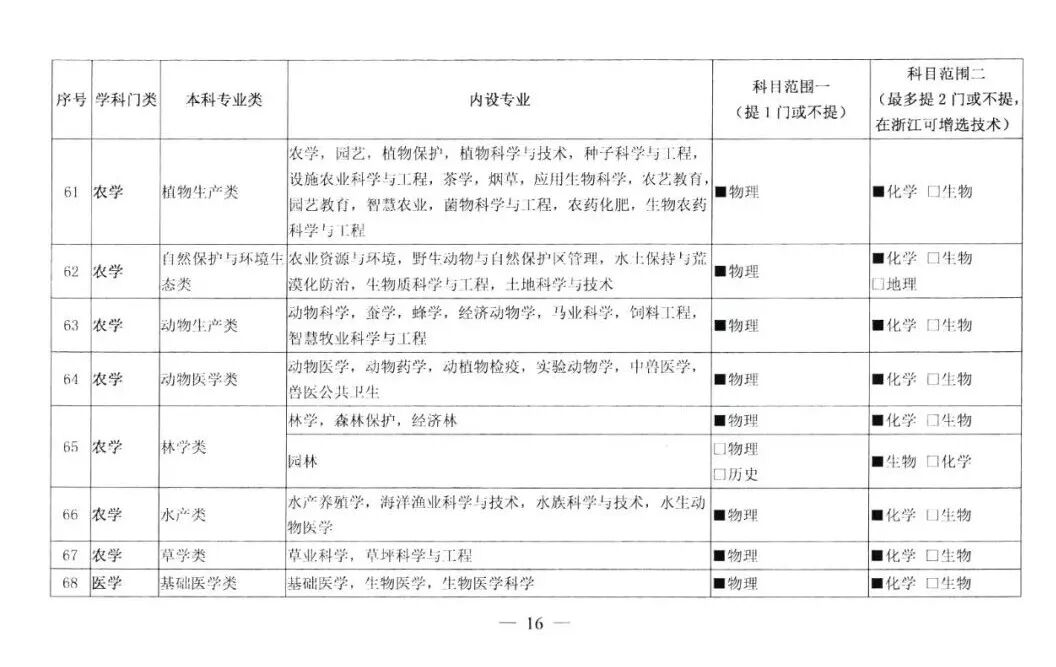 有的专业不限选考科目,有的专业要求必须选考某一门,有的专业要求考生在某两门科目中任选一门,还有的专业要求考生某两门科目均须选考。