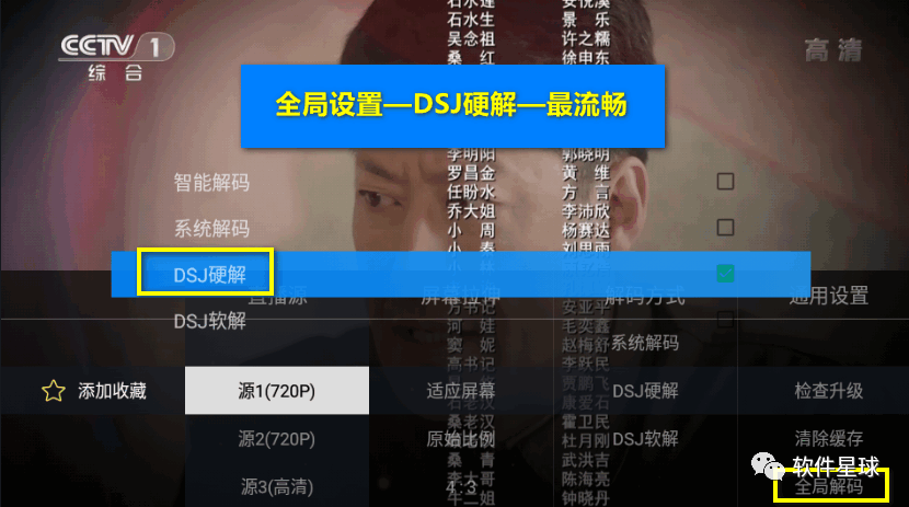 6、实测发现,『全局设置』里面的『DSJ硬解』模式下,播放最为流畅。