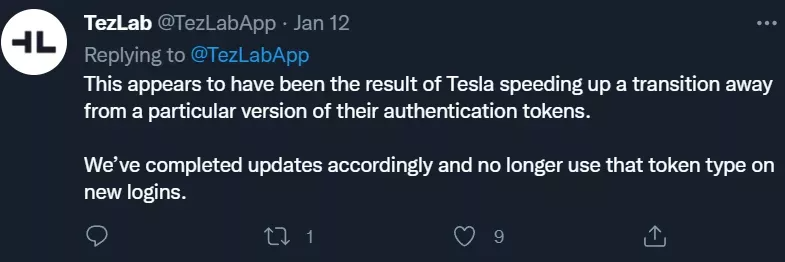 但特斯拉解释说,Colombo 所报告的漏洞涉及另一个平台。由于该平台使用了 V2 Tesla token,而这些 token 都已经过期了,所以没有 TezLab 用户因为 David 帖子中所说的漏洞而面临风险。