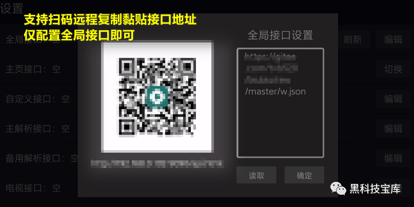 1、支持局域网远程扫码输入,复制黏贴进去片源地址就可以,仅配置全局接口即可。就是远程提交「接口里面的所有代码」;目前,已经取消远程提交文字限制,可以一次全部提交完成,没有字数限制。