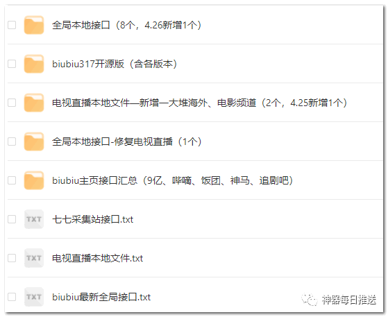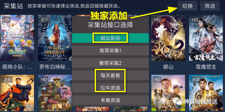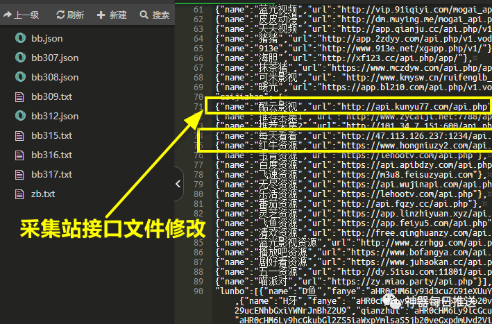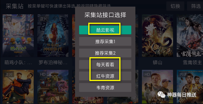3、神器每日推送重点对采集战接口进行了补充,补充了库云影视(就是七七影视)、每天看看、红牛资源,主要就是实战测试一下开发者全新版下对片源接口的修改方法;