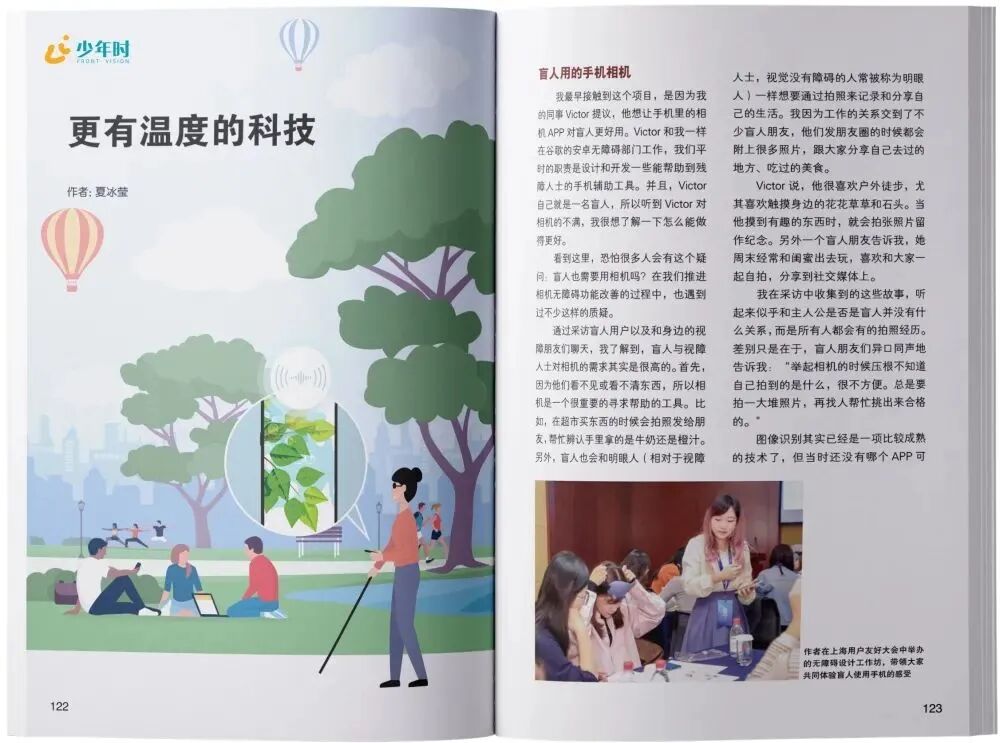 再比如,《2020年代智能生活》中有一篇文章名为《更有温度的科技》,专门介绍了能帮助盲人、语言障碍人群、残障人士的AI+无障碍科技。