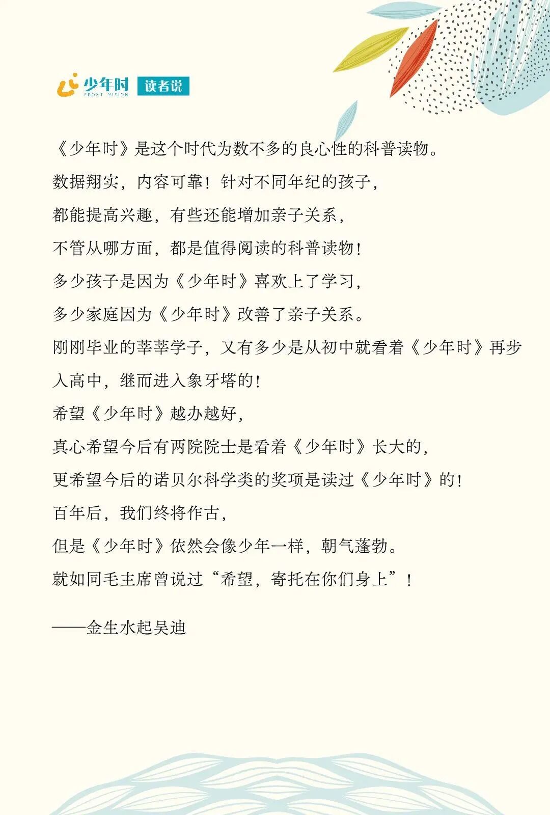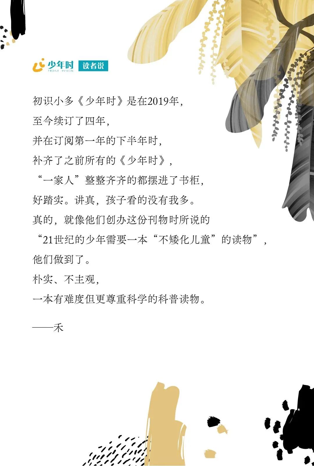 可以这么说,无论之后的教育改革如何推进,跟着《少年时》阅读准没错,因为要求综合素质提升的大方向一直没变,而《少年时》用8年的匠心打磨,已经做到同类产品的极致。