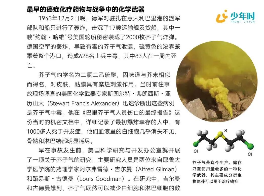 比如,当孩子阅读《对生命负责:新药研发的故事》这本书时,会惊讶地发现用于控制白血病和淋巴癌的氮芥,也曾在战争中被当作生化武器使用;抗肿瘤成分紫杉醇,也曾在中世纪的欧洲被当作毒物涂抹在弓箭上。