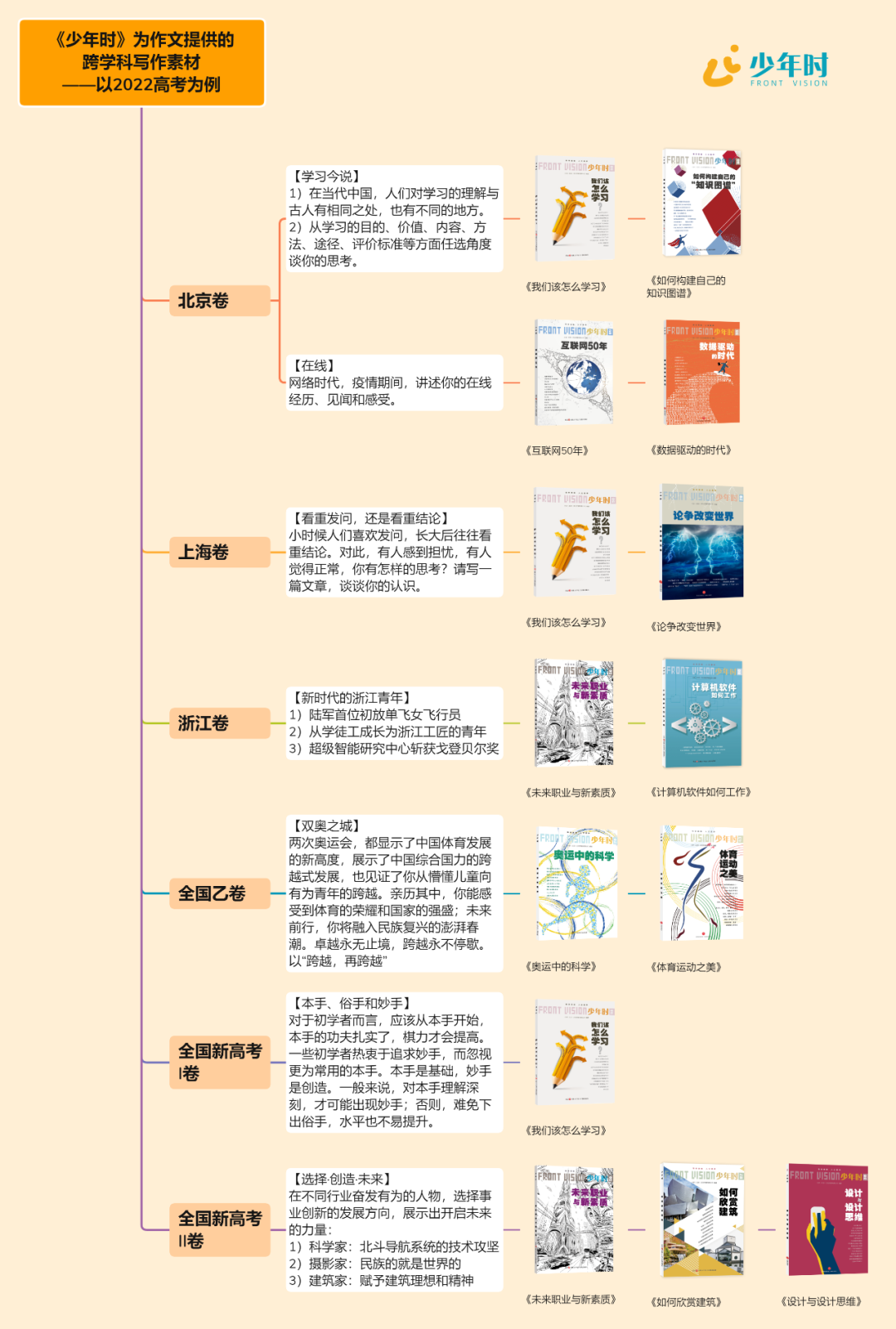 比如2022高考作文浙江卷中的“超级计算机”、北京卷中的“防疫设计”、全国新高考I卷中的“本手、妙手和俗手”等等,都能在《少年时》中找到对应的知识。