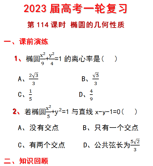 2023届高考数学第一轮复习--第114课时:椭圆的几何性质