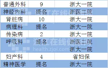 在所有专科排名中,浙江的医院进入前五的专科主要有:浙大一院的传染病全国第2;省儿保的小儿内科全国第3;省妇保的妇产科全国第4;浙大一院的血液学全国第5;温医大眼视光医院的眼科全国第5。