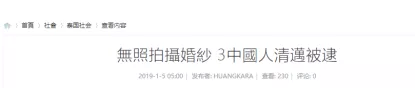据泰国清迈移民局透露,被捕的3名中国游客包括摄影师和一对新人。